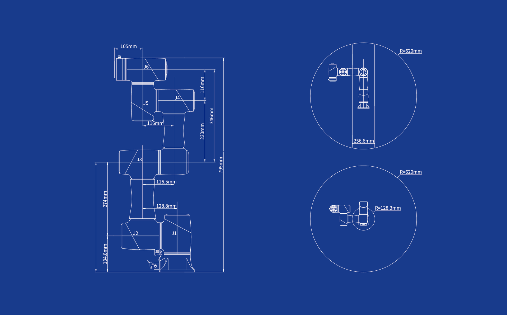 | Working Radius | 620 mm |